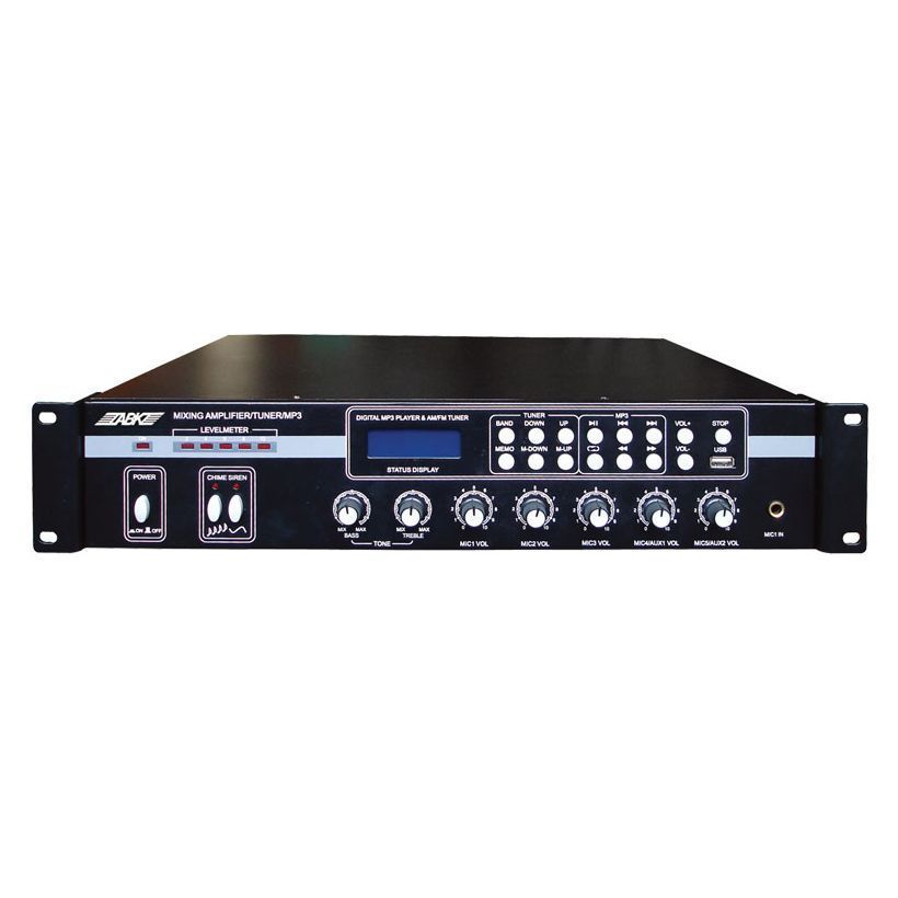 ABK PA-2306 представляет собой компактный микшер-усилитель со встроенным MP3-плеером, тюнером FM/AM, предусилителем и усилителем. Модель имеет входы: 5 MIC (балансированных) с фантомным питанием, переключение между MIC4 и MIC5, а также между AUX1 и AUX2, 1 вход REC, выходы: 1 REC, 70В. 100В, 4 – 16 Ом – выход спикера, выход для звонка и сирены. Три уровня приоритета заглушки: MIC 1 → сирена → звонок, 5-разрядный LED-индикатор уровня, независимый регулятор громкости для каждого входа, функции «master bass» и «контроль дискантов». Защита от перегрева, перегрузки, короткого замыкания, шума. Мощность – 60 Вт. ABK PA-2306 – отличный микшер-усилитель по доступной цене!
