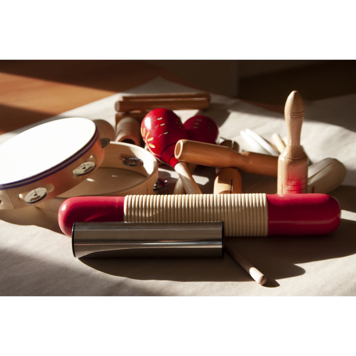 Качественный перкуссионный набор AP Percussion LT17 изготовлен из экологически чистых материалов состоит из 17 предметов. Набор поставляется в прочном чехле. Комплектация: – тамбурин 8'' (2 шт.) – агого (1 шт.) – кастаньеты (1 пара) – кастаньеты на ручке (1 шт) – гуиро (1 шт.) – клавесы (1 пара) – набор треугольников 4'' 5'' 6'' 7'' 8'' (5 шт.) – шейкер металлический (1 шт.) – тон-блок (1 шт.) – двойной тон-блок small (1 шт.) – двойной тон-блок mi (1 шт.) – маракасы деревянные (1 пара) AP Percussion LT17 подойдет детям в качестве первого знакомства с музыкальными инструментами.