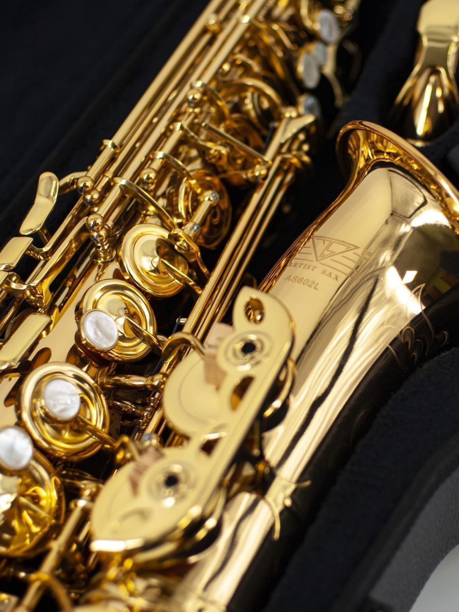 Artist AS-602L Саксофон альт Eb, желтая медь, лакированный, тянутые клапана (soldered toneholes), высокий клапан F#, в комплекте кейс, ремень, мундштук