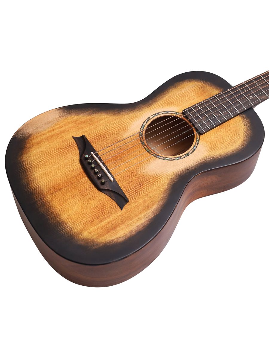 Bromo BAR6H hs — изысканная акустическая гитара в компактном корпусе Parlor. Цельные породы древесины обеспечивают богатый, сбалансированный тембр и долговременную стабильность инструмента при перепадах влажности и температуры. Компактный корпус Parlor удобен для игры сидя, путешествий и для музыкантов с небольшой комплекцией; даёт отчётливый, артикулированный звук с акцентом на средние частоты — идеален для пальцевой техники и фолк‑стилей. Двухсторонний анкер позволяет точно регулировать прогиб грифа под разные стили игры и калибры струн. Винтажные колки «Bromo» из античной латуни не только формируют ретро‑эстетику, но и гарантируют плавность хода и надёжность настройки. Матовая отделка подчёркивает текстуру дерева, тактильно приятна и не собирает отпечатков. Комплектация чехлом обеспечивает безопасную транспортировку и хранение. Bromo BAR6H hs — выбор музыкантов, ценящих аутентичное звучание, эргономичность и детализированный дизайн в винтажном стиле. Модель подойдёт как для домашнего музицирования, так и для сценических выступлений.