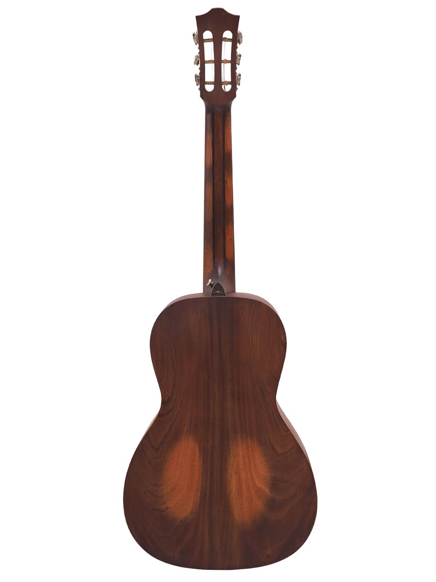 Серия: Rocky Mountain Форма корпуса: Parlor Мензура: 632,4 мм (24 29/32") Ширина грифа: 47 мм (1 27/32") Верхняя дека: цельная ель Нижняя дека и обечайка: цельный махагони Гриф / накладка грифа: махагони с двумя эбеновыми вставками / макассарский эбен Анкерный стержень: двухсторонний Инкрустация на грифе: перламутр Лого на голове: гора Бромо Оформление резонаторного отверстия: «Ковбойская веревка» Бридж: "Орлиное крыло", черное дерево Amara Оформление грифа и пятки: гора Бромо Лады: Jumbo, 20 ладов Верхний и нижний порожки: кость Колки: винтажные "Bromo", античная латунь Отделка: матовая В комплекте: чехол