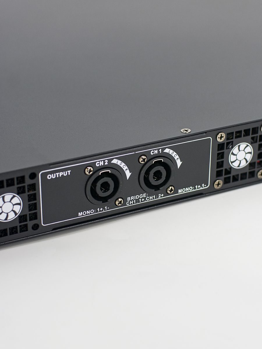 Описание модели: усилитель мощности рэковый Класс: D Мощность RMS/Пик (4 Ом): 2х500 Вт Мощность RMS/Пик (8 Ом): 2х300 Вт Частотный диапазон, Гц: 20-20000 Соотношение сигнал/шум: >105 дБ Входное сопротивление: 20 кОм (балансный), 10 кОм (небалансный) Перекрестные помехи: >75дБ Разъемы: вход XLR, 1В, 20 кОм (балансный), 10 кОм (небалансный) Источник питания: AC 100~240 В, 50/60 Гц Размер (ШxВxГ): 484×375×44 мм Вес: 7.5 кг