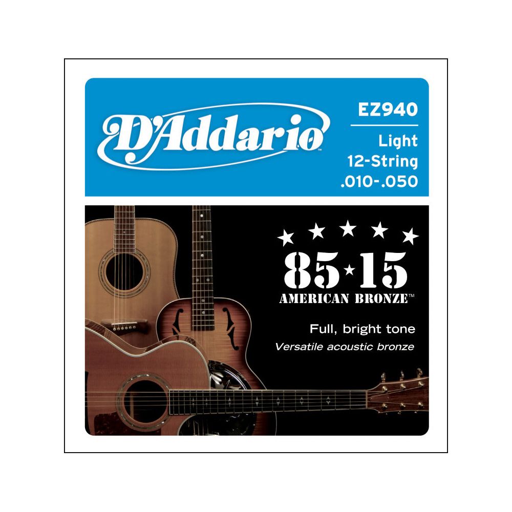 D'Addario EZ940 Струны для 12- стр акустической гитары, бронза, 85/15, Light, 10-50