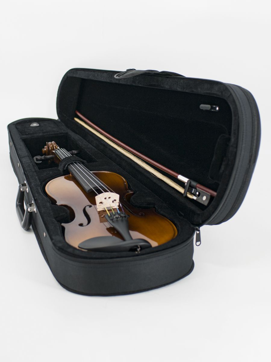 HMI HV-100HA 1/8 Скрипка Student 1/8, в кейсе, смычок, канифоль, верхняя дека - ель, нижняя дека, обечайки - клен, гриф- клен, лак
