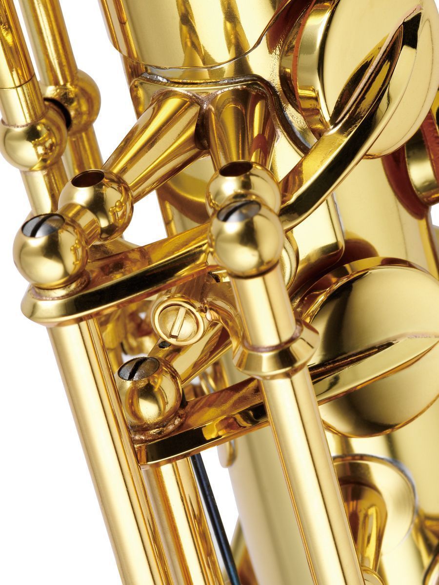 Идеальный баритон-саксофон для ансамбля или оркестра, JBS1000 обладает всеми необходимыми функциями. Клапан нижней A, наклонная клавиша-лопаточка Bb и легендарный тон Jupiter входят в стандартную комплектацию. Корпус из латуни с золотым лаком обеспечивает максимально точный диапазон и удобство игры, а покрытие золотым лаком гарантирует долговечность и красоту. Клавиши из латуни с золотым лаком изготовлены из закаленной латуни высочайшего качества, а затем покрыты глянцевым золотым лаком для долговечности. Регулируемая высота клавиш  позволяет руке любого размера удобно разместиться на инструменте.