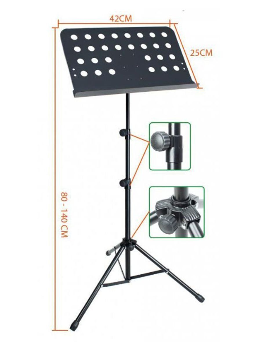 Lux Sound MUS023 представляет собой надежный оркестровый пюпитр с перфорированной подставкой. Компания Lux Sound является производителем аксессуаров для инструментов и музыкального оборудования и имеет 10-летний опыт в создании профессиональных стоек из пластика и металла. На данный момент продукция Lux Sound поставляется в более чем 60 стран мира, также налажено производство товаров для множества мировых брендов. Продукция Lux Sound завоевала уважение клиентов благодаря высококачественным товарам по привлекательным ценам. Инженеры компании внимательно прислушиваются к потребностям покупателей в постоянном стремлении улучшать качество своей продукции. Механизм регулировки и фиксации высоты работает при помощи винтов. Облегченная подставка для нот имеет закругленные углы для безопасного использования. Lux Sound MUS023 – прочный и устойчивый пюпитр по доступной цене.