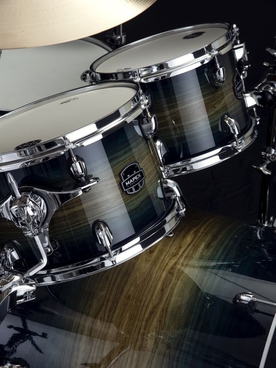 Серия: Armory Малый барабан: TOMAHAWK 14”х5,5” Корпус: клен/береза, 8 слоев, толщина 7,55 мм Система крепления томов : SONIClear™ Пластики: Remo UC Double-ply Clear Batter, UX Clear Bottom для подвесных томов Remo UT Пластики: Clear Batter head(with dampeningring), UC Coated Reso Head для бас-барабана Ножки напольного тома: SONIClear™ Цвет: Rainforest Burst * Набор стоек, педаль и стул не включены в комплект. ** Для комплектации ударной установки рекомендуем использовать хардваер Mapex 800 серии или комплект стоек с педалью Mapex HP8005
