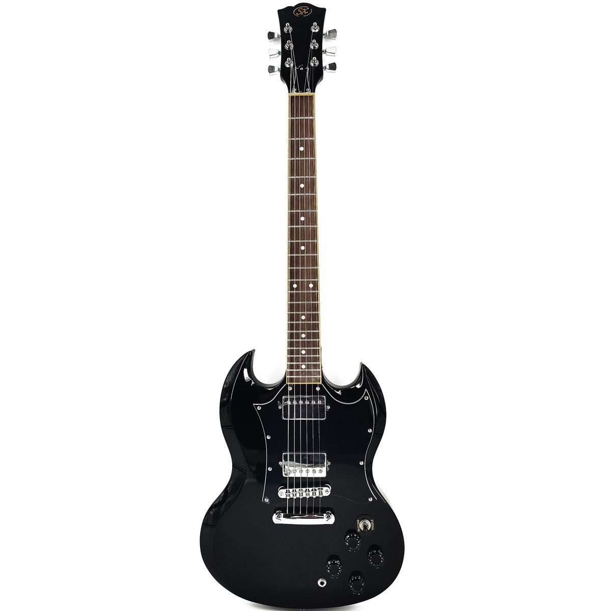 SX SE4-SK-BK Набор: электрогитара, корпус: ольха, гриф: клен, накладка: палисандр, 22 лада, контроллеры: 2 громкости, 2 тона, 3 позиционный переключатель, цвет: Black, кабель, ремень, тюнер, 6 медиаторов, чехол