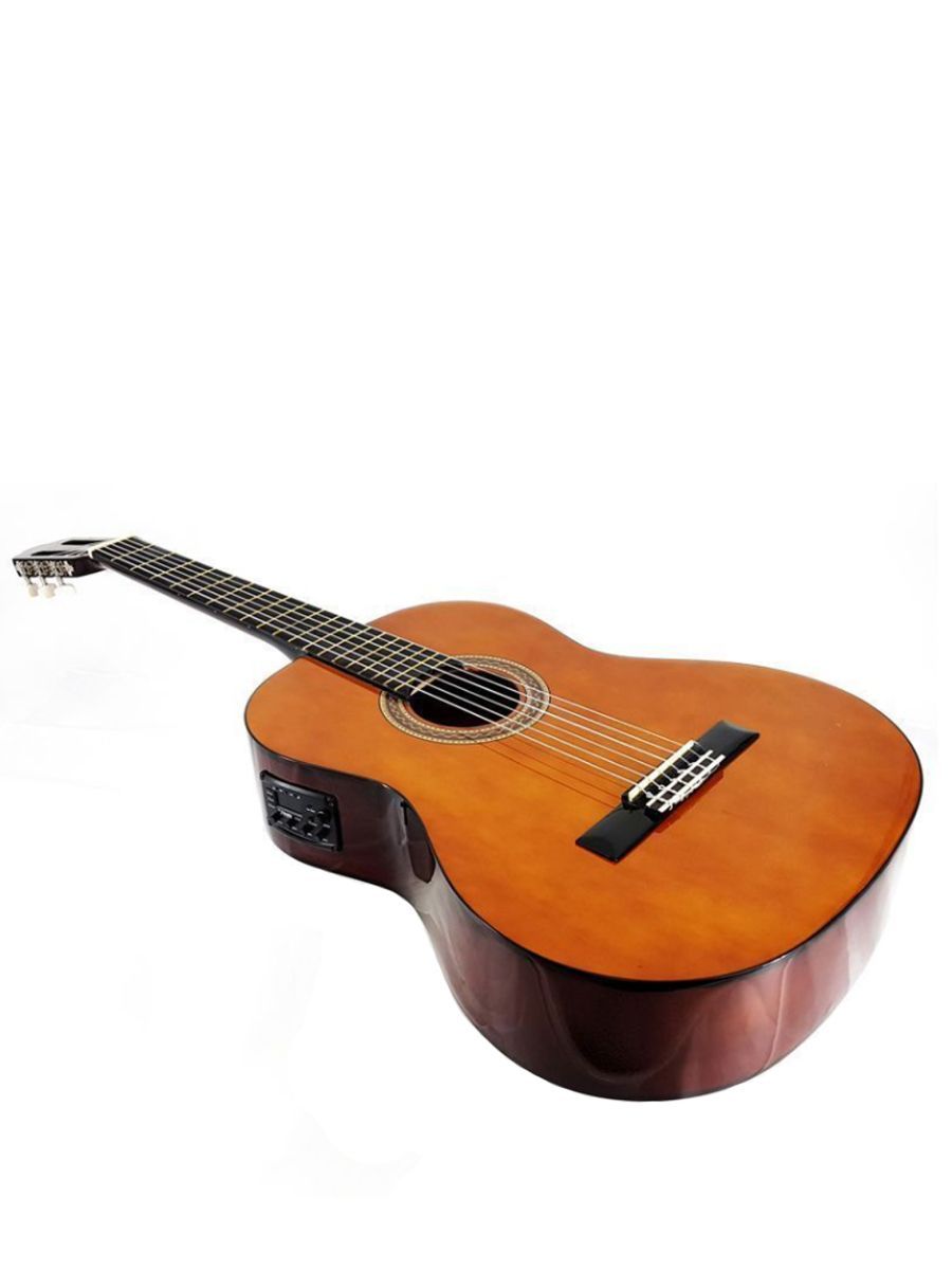 Электроакустическая гитара Valencia VC104E – качественный инструмент начального уровня, который можно легко использовать на сцене. Модель оснащена звукоснимателем с 4-полосным эквалайзером и качественным тюнером. Корпус гитары изготовлен из липы, которая обладает усиленными резонансными особенностями. Гриф выполнен из нато, накладка из клена, нижний порожек из махагона. Никелированные колки прекрасно держат строй. Нейлоновые струны, установленные на комфортной для игры высоте, делают гитару удобной даже для самых юных исполнителей. Натуральное покрытие сохраняет поры древесины открытыми, что значительно улучшает звучание инструмента. Valencia VC104E – отличная электроакустическая гитара по доступной цене.